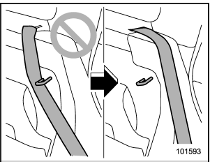 ● The seatbelt should not pass behind the securing hook for the seatback.